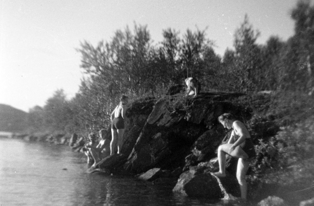 En varm sommardag i slutet på 1940-talet gick ungdomarna i Borkan till Nedre Fättjaure för sol och bad. Foto: Kjell Fjällström Visningar: 106